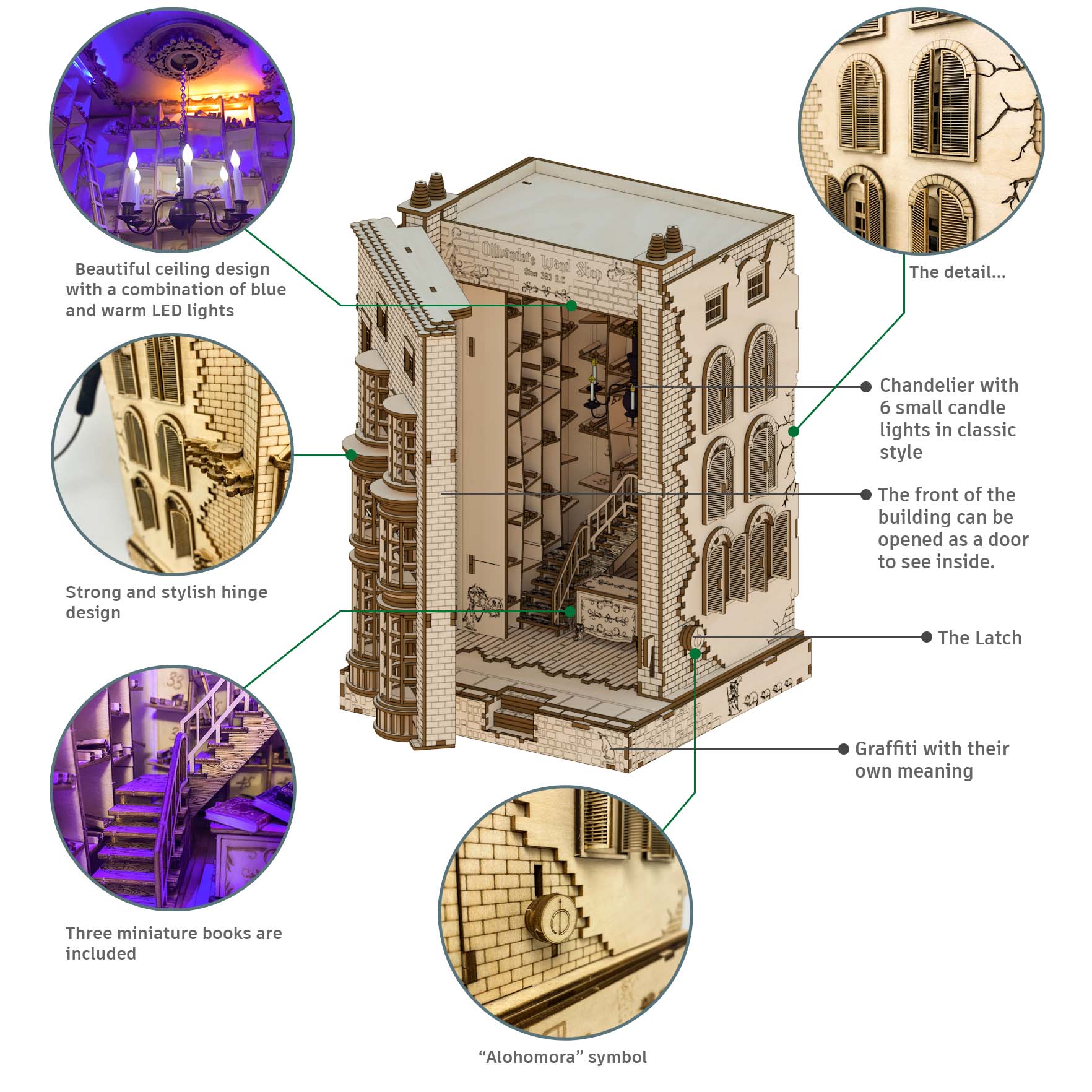 Package Included: Pre-cut Wooden Pieces, English Instruction Guide, Warm, Light Strings, Auxiliary Tools.